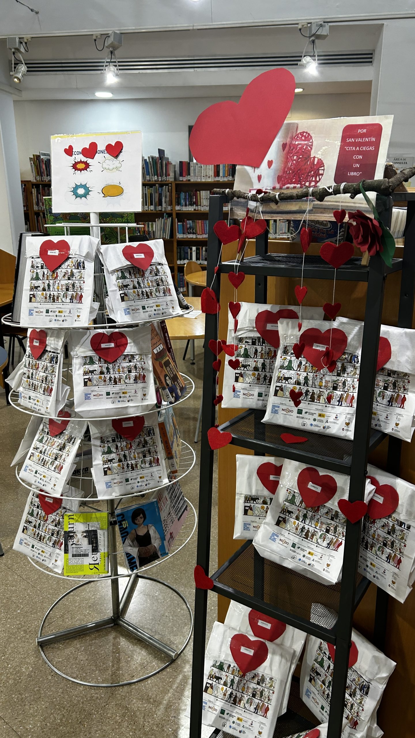 «Quería felicitar a la Biblioteca Entreparques por la iniciativa de la ‘Cita a ciegas con un libro’ por San Valentín. La decoración es chulísima; las bolsas con los corazones hacen que el stand se vea precioso y muy cuidado.