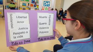 El pasado miércoles 30 de enero 2019, día de la PAZ, se inauguró la Exposición Taller «Mi Viaje», participando en dos sesiones, los cursos de 6º A y B del Colegio Mª Auxiliadora de Sevilla.