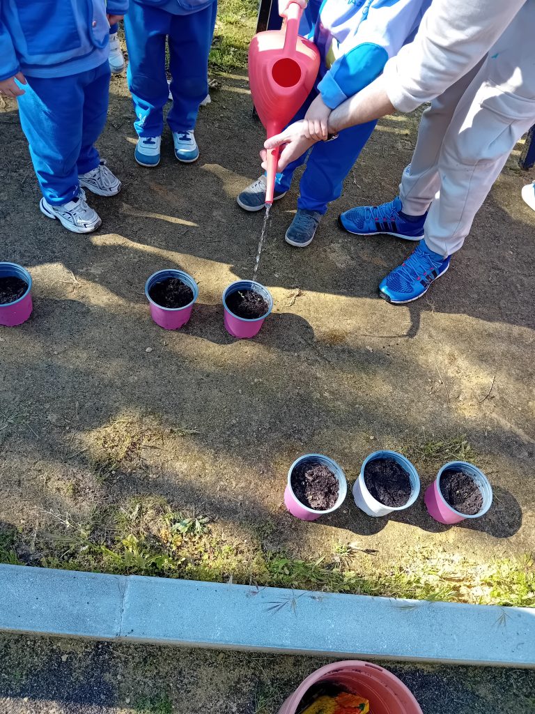 En esta primera sesión han participado con nosotros los alumnos de la Escuela Infantil El Castillo Mágico con su profesor David y la monitora del huerto Yolanda plantando las semillas y regándolas. En algunas macetas podemos ver como ya algunas semillas han germinado y hemos obtenido los primeros brotes que posteriormente trasplantaremos.