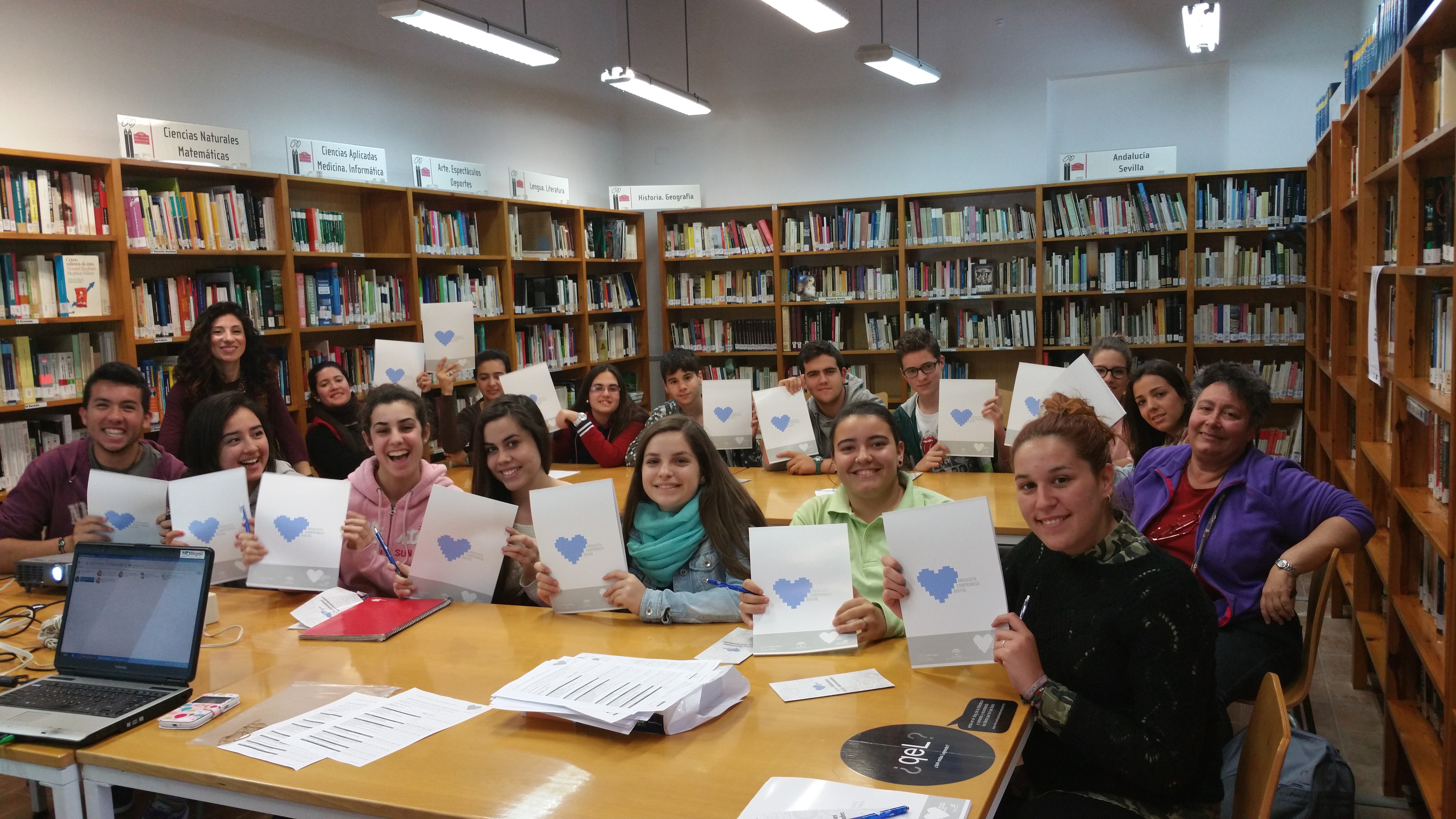 Menuda mañana la de ayer en la biblio, a las 10.00 h. llegaron los niños de 6º del Buenavista de la profesora Mª Carmen, luego a las 11.00 h. la clase de Gloria y a la 13.00 los niños de Bachillerato del IES San Jerónimo a la jornada de Andalucía Compromiso Digital sobre Videocurriculum.