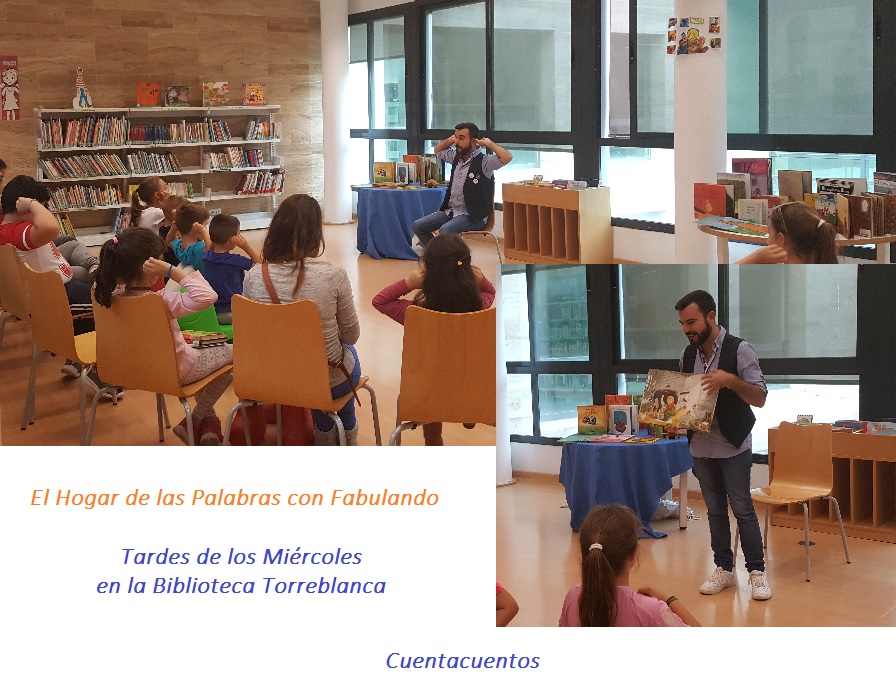 collage-cuentacuentos-19-octubre-2016Esta tarde los más pequeños del barrio de Torreblanca han disfrutando con Fabulando y su Cuentacuentos de las tardes de los miércoles, esta vez con El Hogar de las Palabras. Palabras que habitan en los cuentos, en las ilustraciones, llenos de colores, sonidos… y hemos venido a descubrir ese mundo de las palabras y conocer dónde habitan, en su hogar, en su casa, la biblioteca.