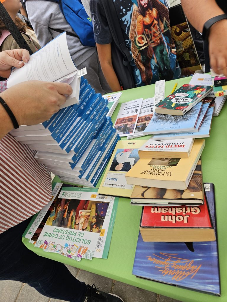 Y finalmente, la mañana del viernes 8 de noviembre estuvo dedicada al público en general pero sobre todo a escolares, quienes disfrutaron de actividades de animación a la lectura y visitas guiadas a la Feria en el parque de la plaza Salvador Valverde, junto con la visita también de diversas autoridades locales. Este espacio albergó stands de intercambio de libros, información, zonas de actividades y un pequeño escenario donde la Biblioteca Torreblanca no podía faltar trasladándose a dicho espacio.