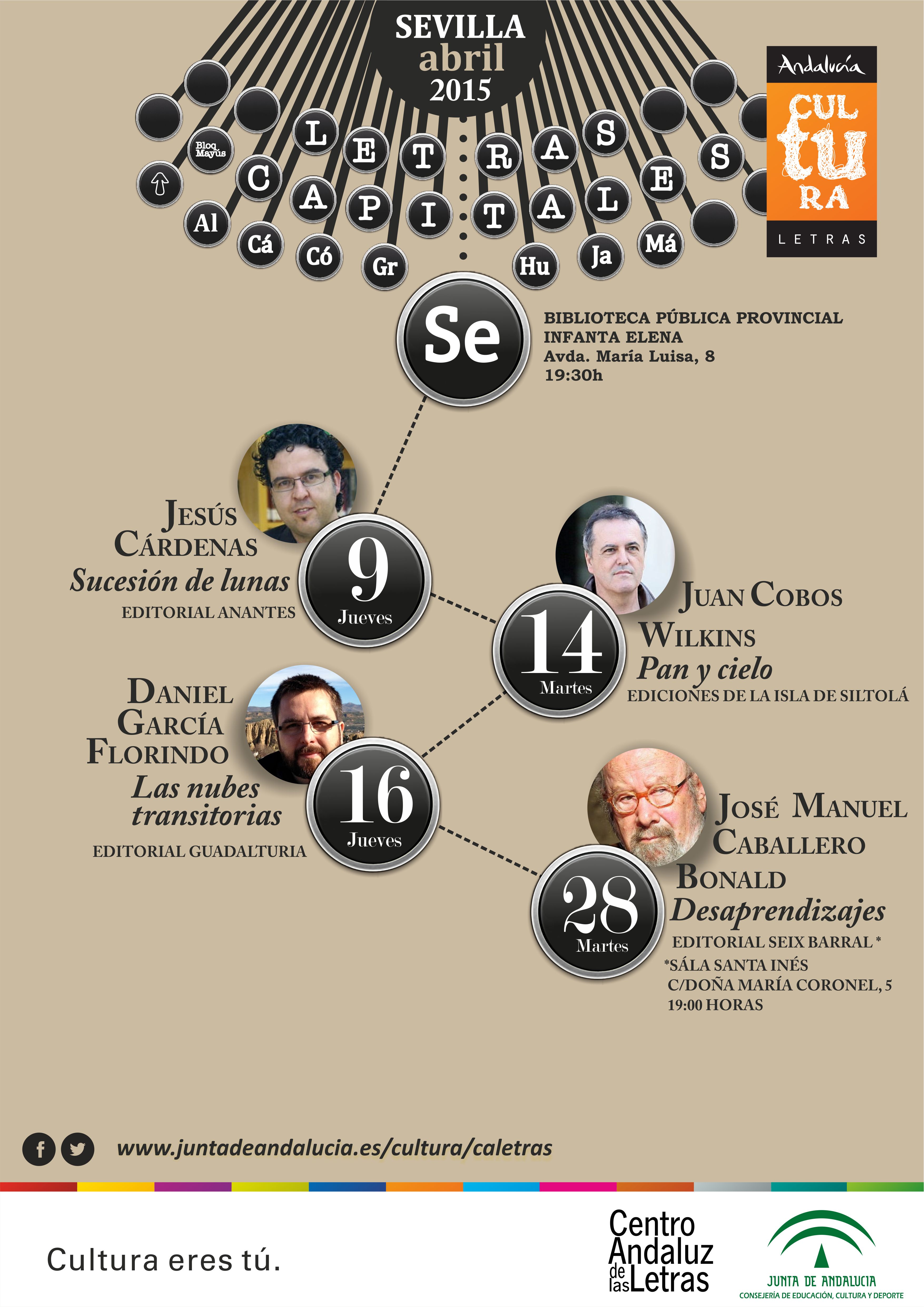 Para más información puede visitar la página web del Centro Andaluz de las Letras en su sección Letras Capitales en el enlace: http://www.juntadeandalucia.es/cultura/caletras/opencms/es/portal/programas_literarios_estables/letras_capitales/