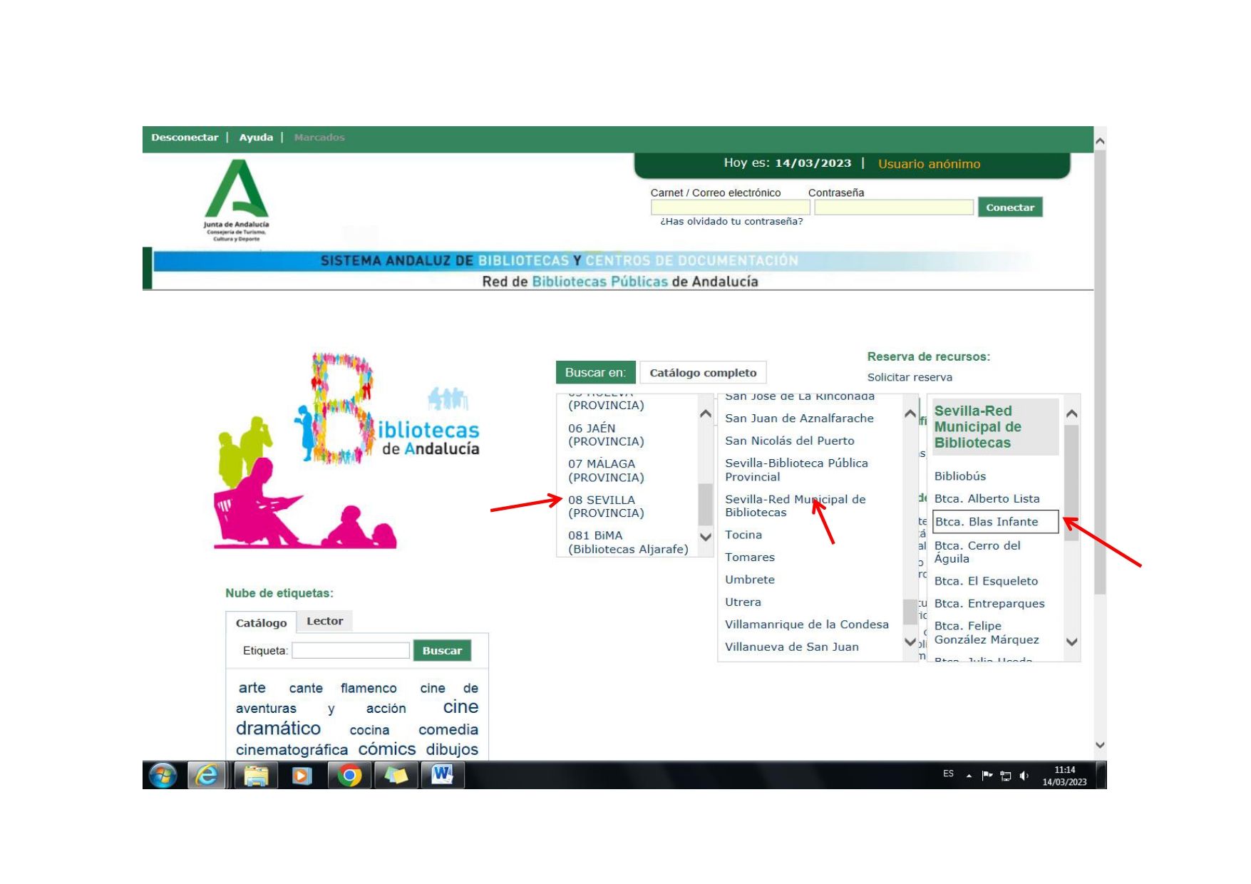 SEGUNDO PASO: Buscar en catálogo completo 08 SEVILLA (PROVINCIA) – Sevilla- Red Municipal de bibliotecas – Btca. Blas Infante