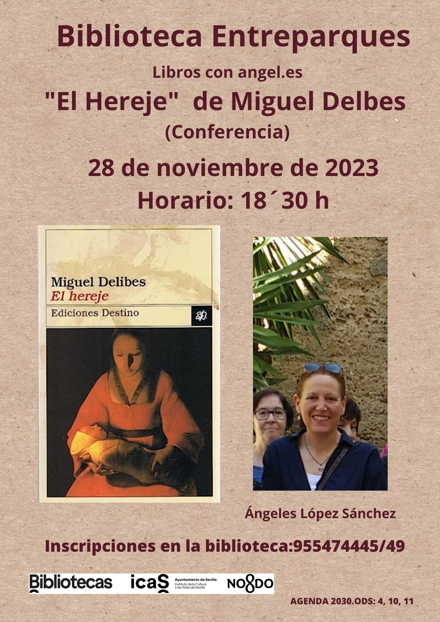 El próximo martes , día 28 de noviembre, nos reuniremos en la biblioteca para comentar el libro de Miguel Delibes, El Hereje, a las 18,30 h. Como en otras ocasiones, esta tertulia la moderará , Ángeles López Sánchez.
