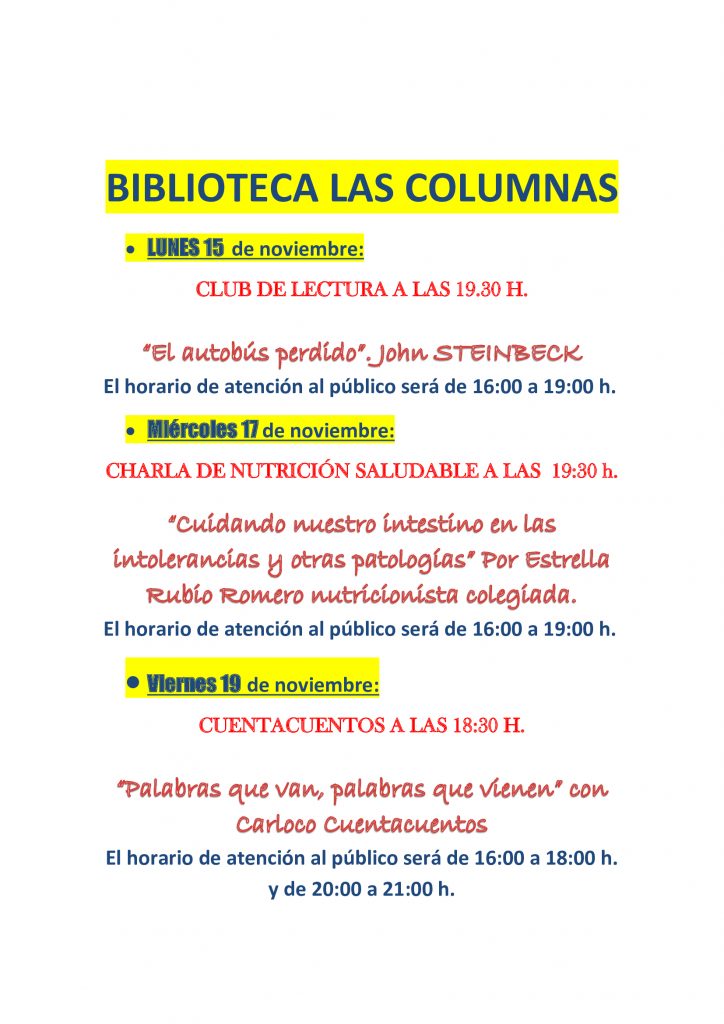 ACTIVIDADES EN LA BIBLIOTECA PARA LA SEMANA DEL 15 AL 19 DE NOVIEMBRE DE 2021